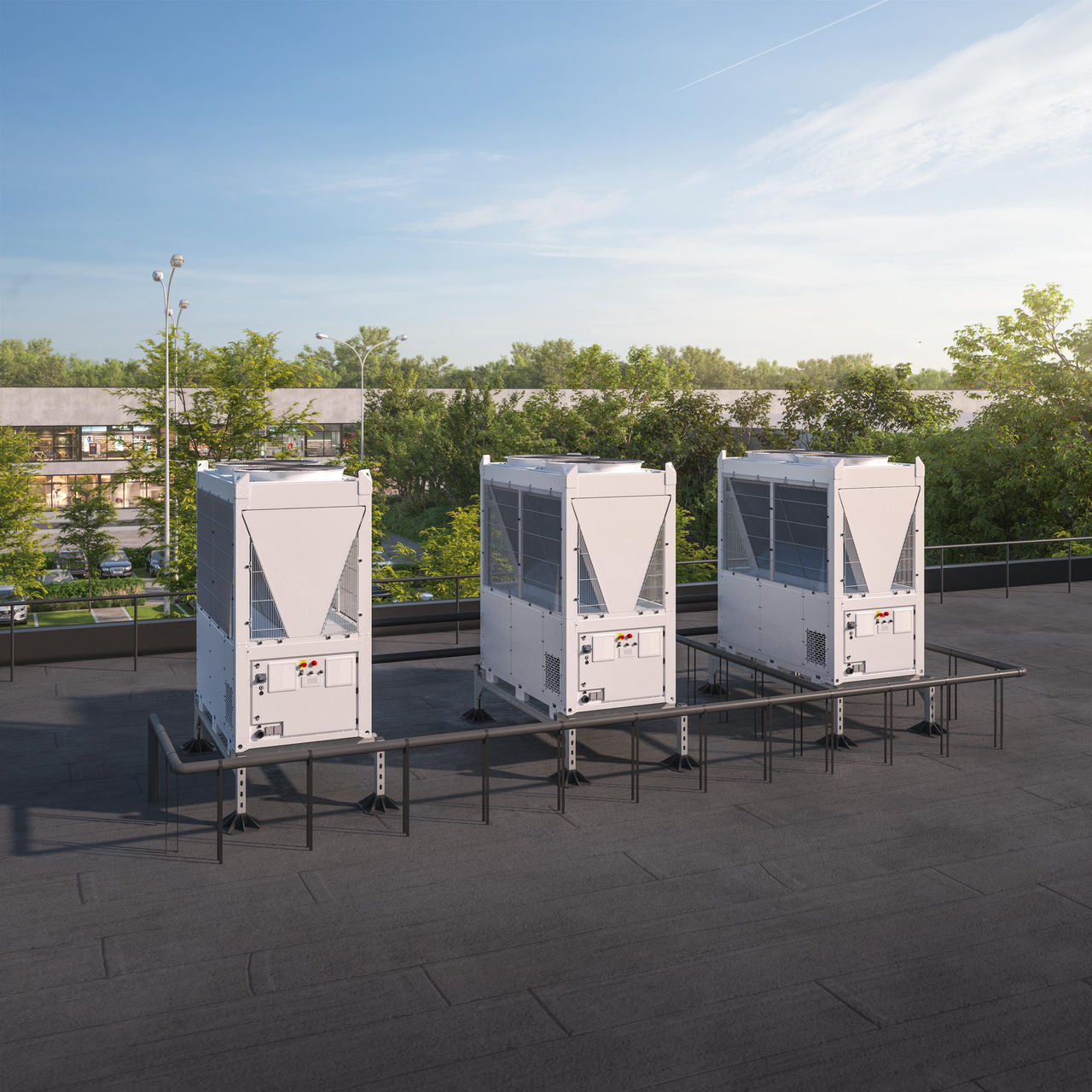Блоки оснащені у стандартній комплектації спіральними компресорами з інверторним приводом і безщітковими вентиляторами EC*, що дозволяє здійснювати безперервне коригування продуктивності відповідно до реальних потреб системи. У поєднанні з модульною архітектурою такий підхід забезпечує особливо ефективну роботу в умовах часткового навантаження, характерних для сучасних будівель і багатьох промислових процесів. Безперервна модуляція скорочує цикли вмикання/вимикання, сприяючи підвищенню сезонної ефективності та стабільності роботи протягом усього року.
